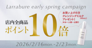 いつもララビュウ製品をご愛用いただきましてありがとうございます。 今年初のコラム「教えて潤子さん!」の更新記念といたしましてこの度、キャンペーンを開催いたします!コラムを是非ご一読ください。 キャンペーン開催期間:202 […]